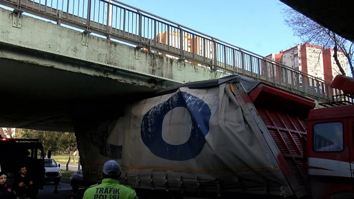 Bakırköy’de kamyon alt geçide sıkıştı: Sürücüye para cezası kesildi!
