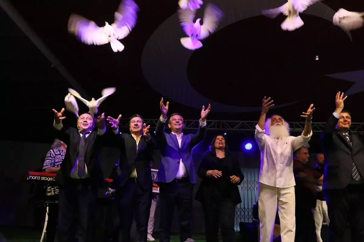 Konuşmasının ardından Aydın Büyükşehir Belediye Başkanı Özlem Çerçioğlu, Özel'e Atatürk tablosu, Suavi'ye ise çiçek takdim etti. Ardından sahneden gökyüzüne güvercinler bırakıldı.
