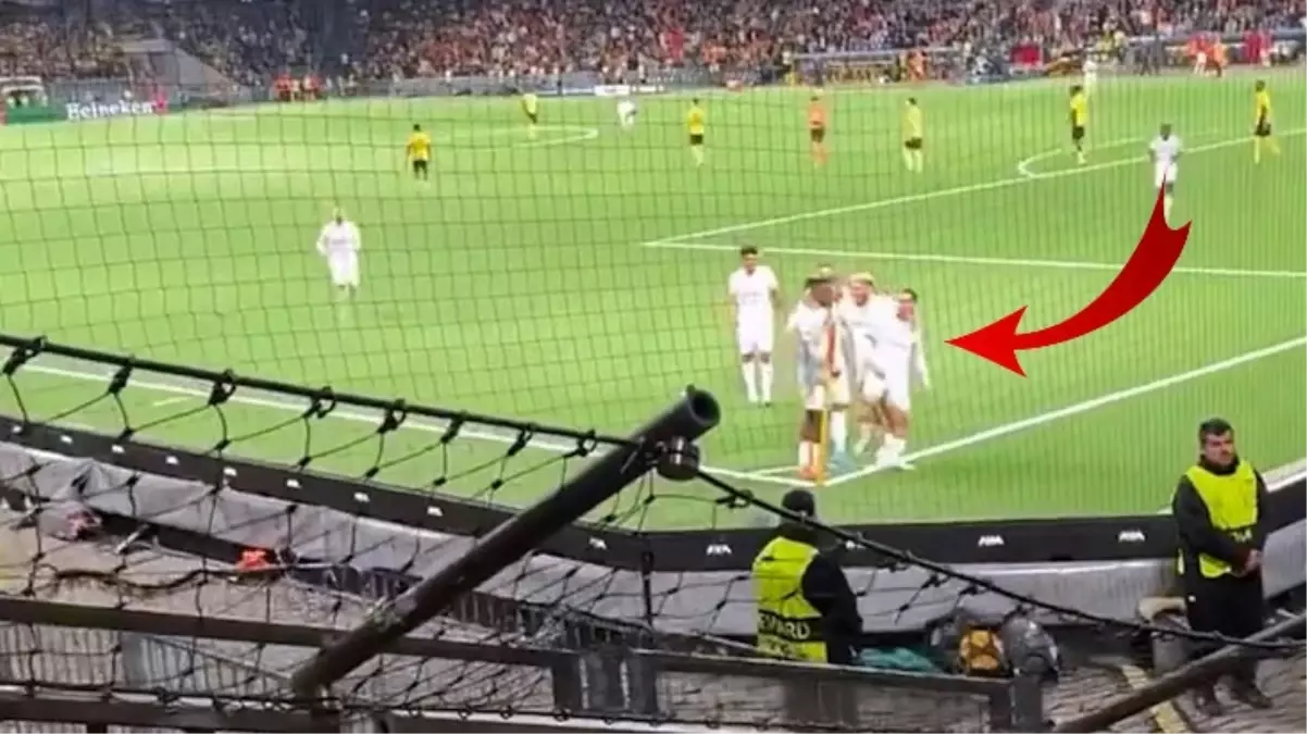 Maç sırasında çekilen ve Kerem Aktürkoğlu'nun LGBT bayrağı renklerindeki korner bayrağına tekme attığı anlar ortaya çıktı.