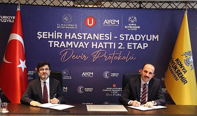 Ulaştırma ve Altyapı Bakanlığı tarafından devralınan Konya Şehir Hastanesi-Stadyum Tramvay Hattı’nın 2. Etabı için Altyapı Yatırımları Genel Müdürlüğü (AGYM) ile Konya Büyükşehir Belediyesi arasında devir protokolü imzalandı.