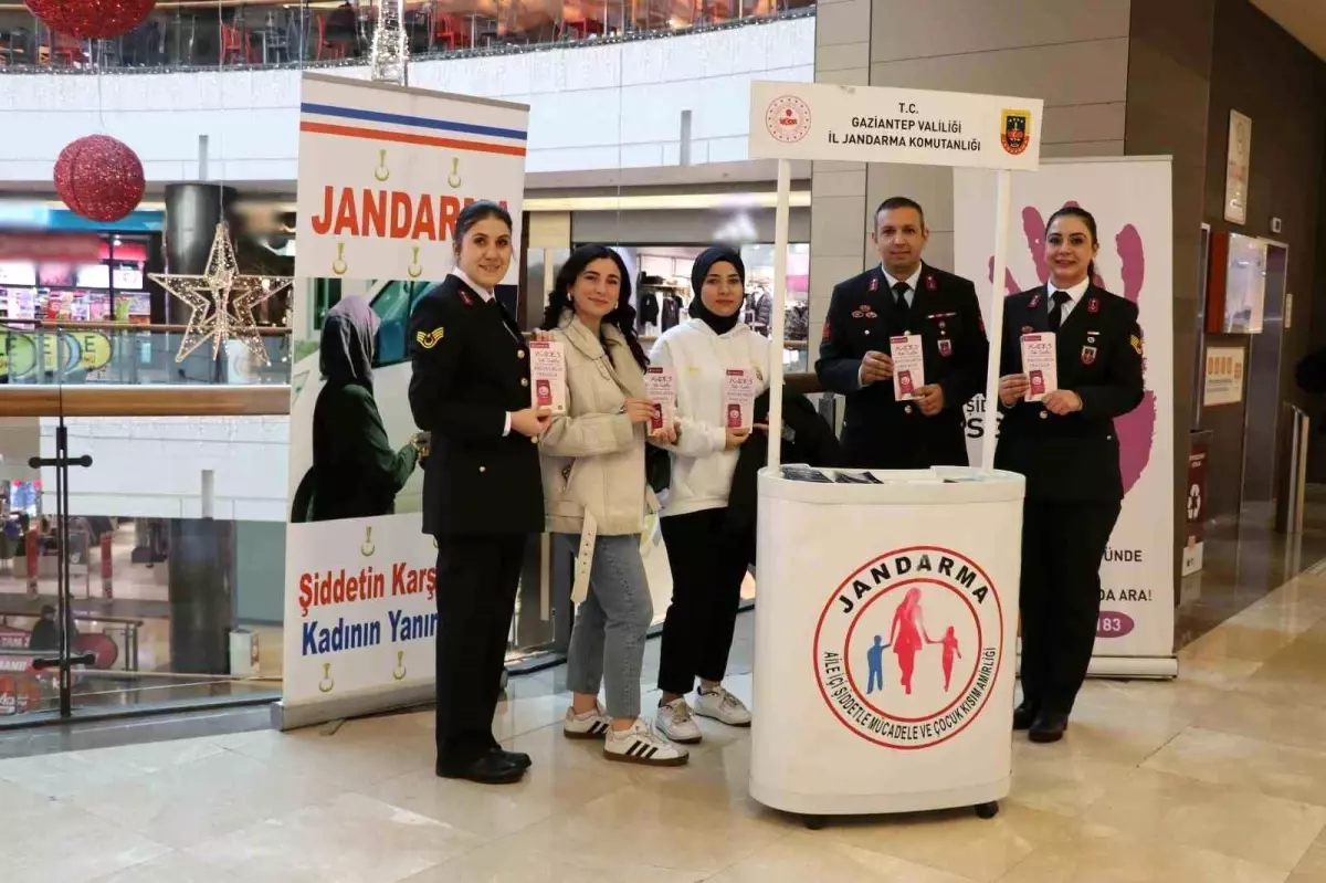 Gaziantep İl Jandarma Komutanlığı ekipleri, “25 Kasım Kadına Yönelik Şiddete Karşı Uluslararası Mücadele Günü” kapsamında Aile İçi Şiddetle Mücadele ve Çocuk Kısım Amirliği tarafından alış veriş merkezinde kadına yönelik şiddetle mücadelenin anlatıldığı stant açtı.